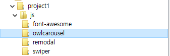 위에 보이는 사진처럼 owl 플러그인은 js 폴더안에 "owlcarousel" 이름으로 있습니다.