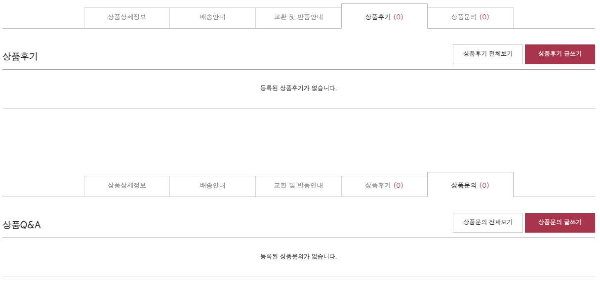 위 이미지와 같이 후기와 Q&A게시판에 말머리 기능을 사용하더라도 상품 상세 페이지에는 말머리가 노출 되지 않습니다.